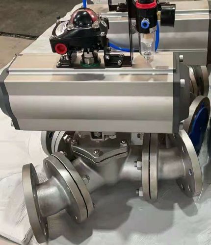 Q642F-氣動高平臺Y型三通球閥可以換向、分流、合流。氣動執(zhí)行器可以配雙作用氣動或單作用氣動,雙電控電磁閥、單電控電磁閥、限位開關、手輪、空氣過濾減壓器。單作用氣動,靠彈簧的恢復張力使閥門復位。